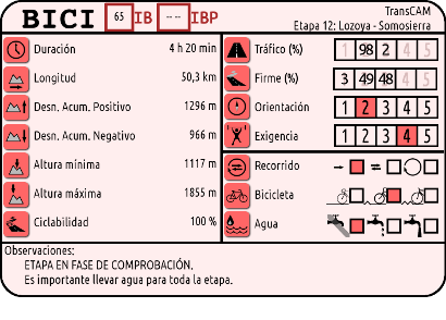 Comenzamos la etapa en Lozoya y ascendemos hacia el norte durante unos 11 km hasta coronar el Puerto de Navafría, para comenzar desde ahí a llanear y descender durante el resto de la etapa, pedaleando por la famosa pista horizontal, hasta llegar a Somosierra, la localidad más septentrional y la de mayor altitud (1433 msnm) de la Comunidad de Madrid. Esta etapa enlaza con la TransIberia.