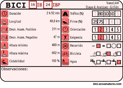 Partimos de Aranjuez, Patrimonio de la Humanidad, y continuamos pasando por Titulcia, Ciempozuelos, pasamos entre Valdemoro y Pinto. Seguimos hacia el oeste para pasar por Torrejón de Velasco, Cubas de la Sagra, y acabamos en Griñón. Etapa en suave pero constante ascenso.