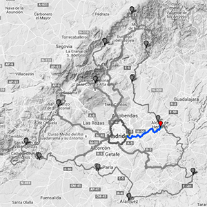 La radial discurre en dirección este, pasando por el Humedal de Coslada, junto al río Jarama y el Henares.