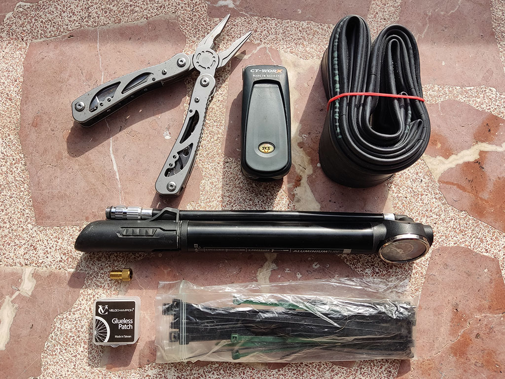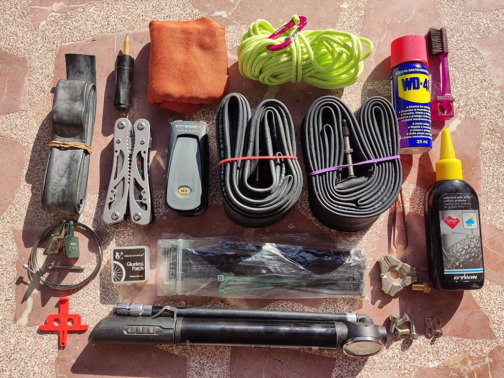 También deberemos tener en cuenta que las herramientas y los repuestos que llevamos sean los apropiados para nuestra bicicleta. Y, por otro lado, que cada cosa que añadimos al equipaje luego es un peso que hay que desplazar con nuestro esfuerzo.