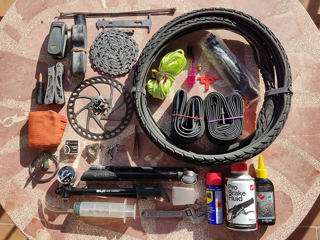 Kit de herramientas y repuestos para un viaje por lugares con facilidad para encontrar repuestos